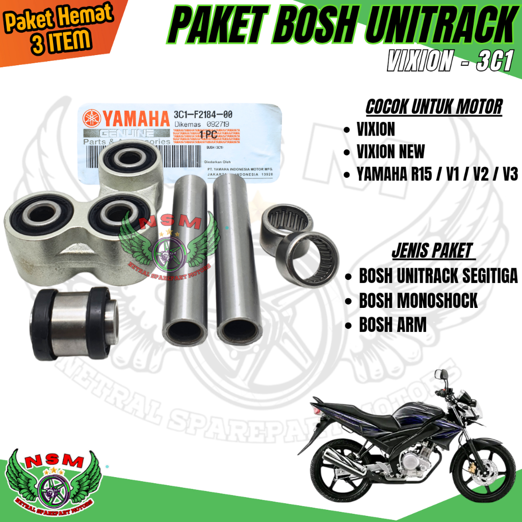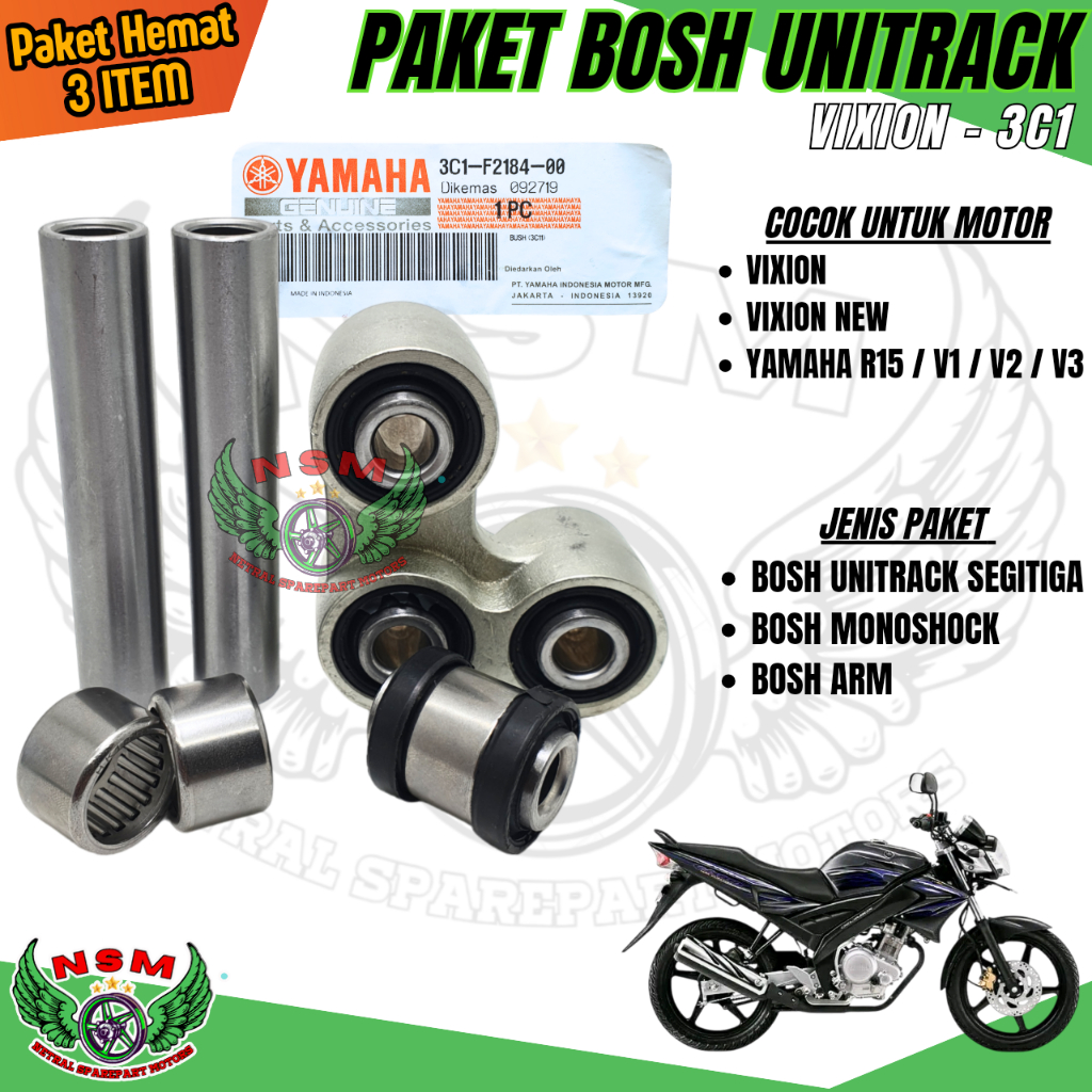 PAKET KOMPLIT UNITRACK VIXION BOSH ARM VIXION + BOSH MONOSHOCK VIXION + SEROPONG SEGITIGA VIXION NEW / YAMAHA R15 / V1 /