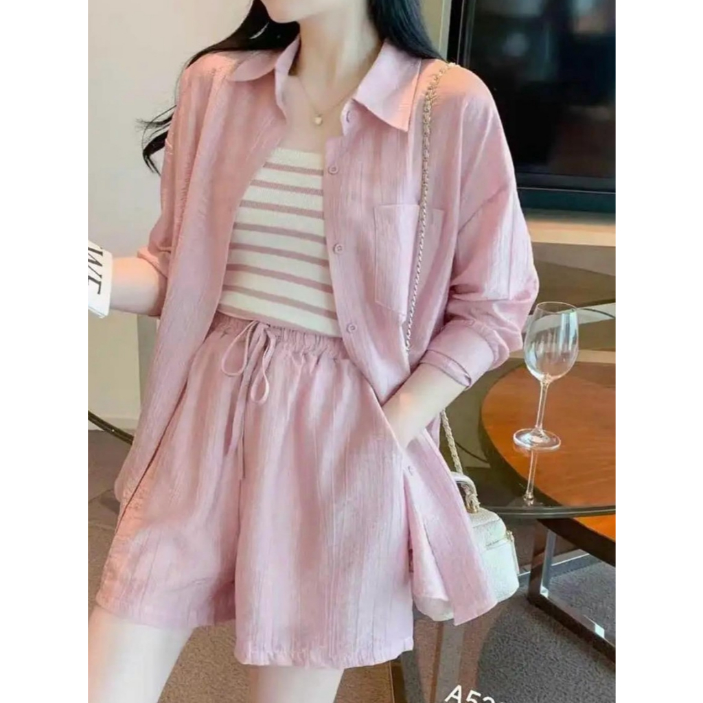 One Set Kemeja Lengan Panjang 3 piece (Kemeja,Celana,Tanktop)