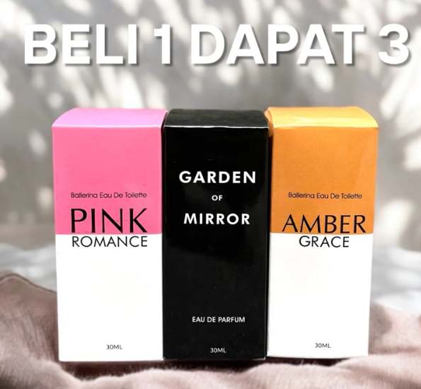 PROMO BELI 1 DAPAT 3 PARFUM PRIA PARFUM WANITA VIRAL BALLERINA AMBER GRACE PINK ROMANCE GARDEN OF MIRROR