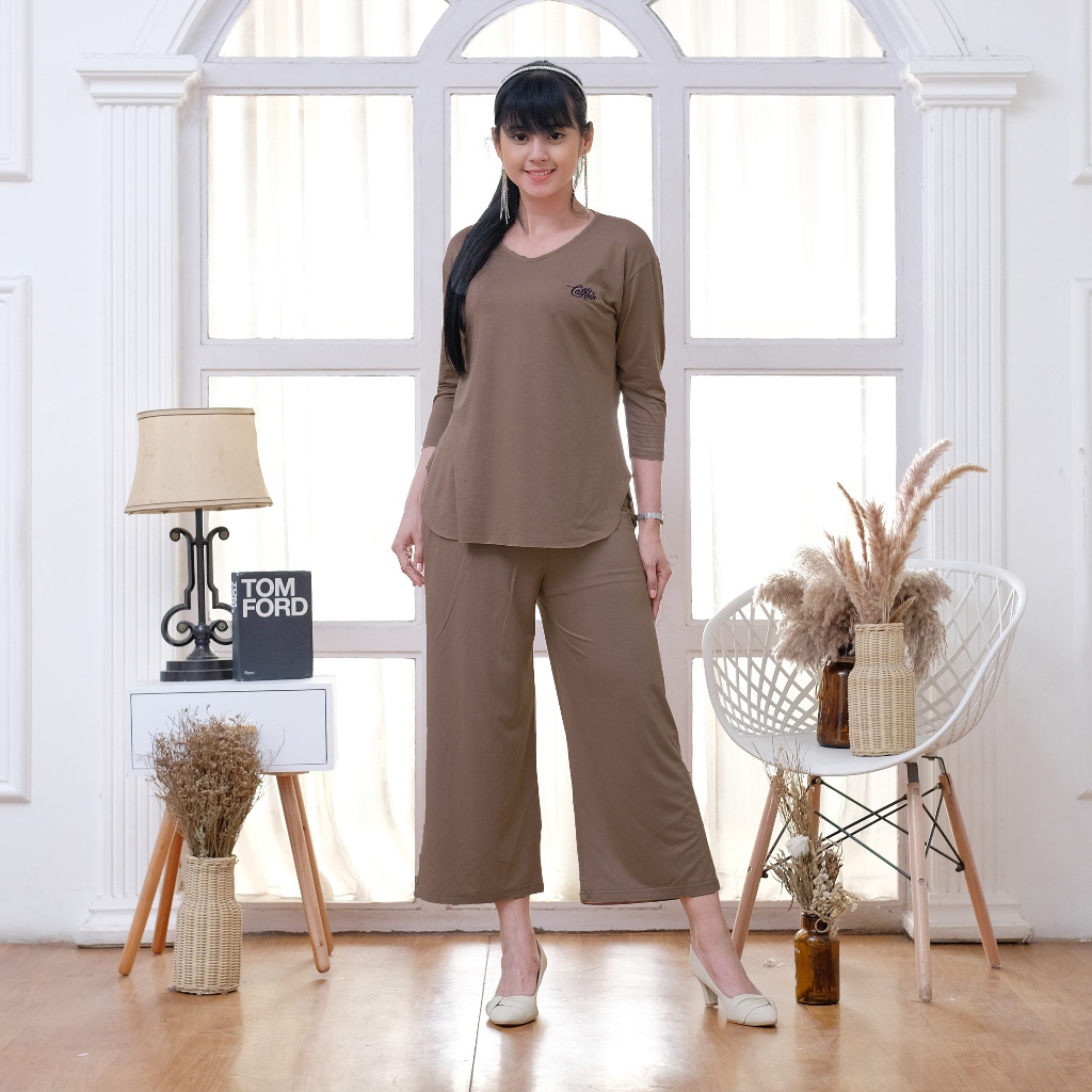 Setelan Kaos Oversize Wanita( L )/Setcel Spandek Premium lengan 7/8/Setelan Kaos Wanita