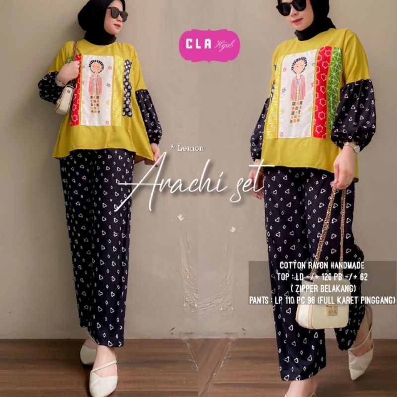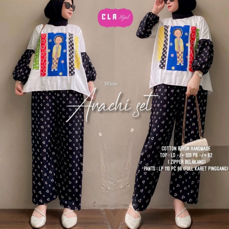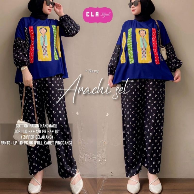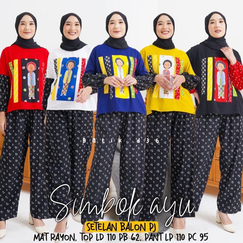 (Semerbak) LD120 Setelan lengan balon panjang Simbok Ayu Oneset Rayon Premium Wanita Cantik motif karakter lucu modern kasual elegan pesta kondangan kekinian trendi