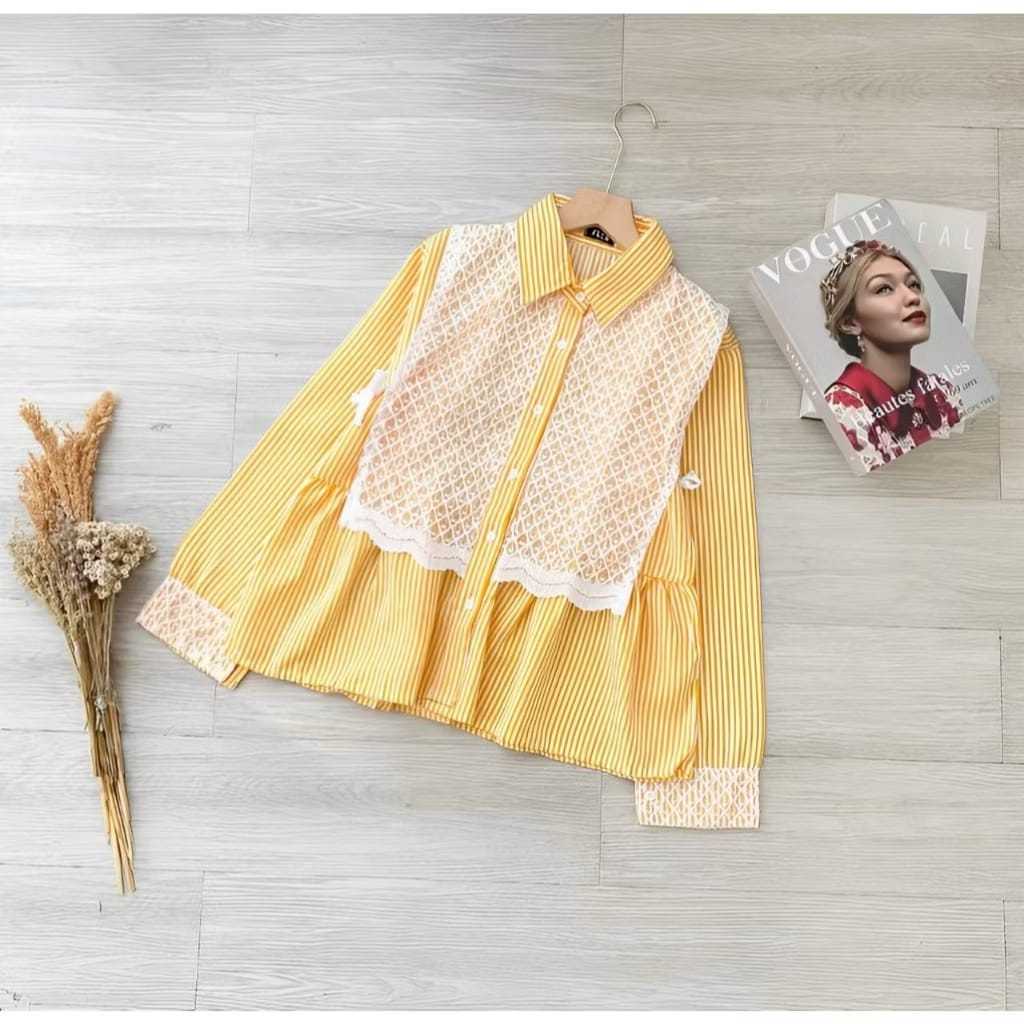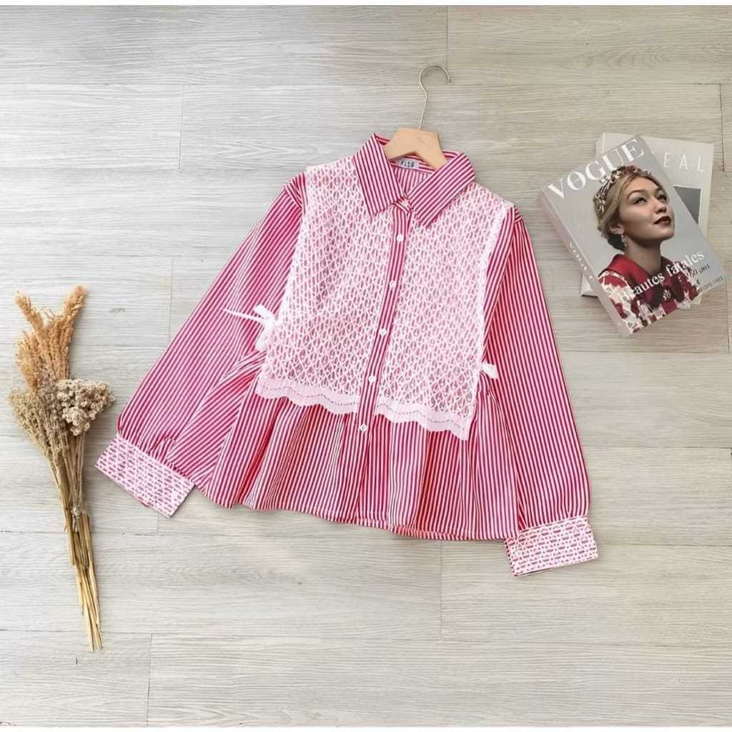 Terlaris Baju Atasan Kemeja Wanita Terbaru Kemeja Salur Mix Brukat Wanita