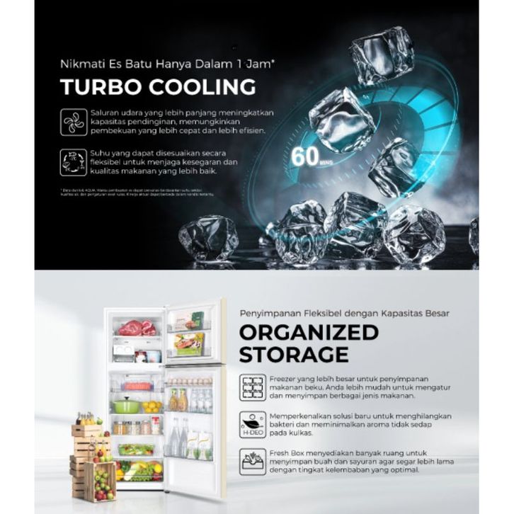 AQUA Elektronik Kulkas 2 Pintu 225 Liter AQR-DTM285CBP BE/ME/PE