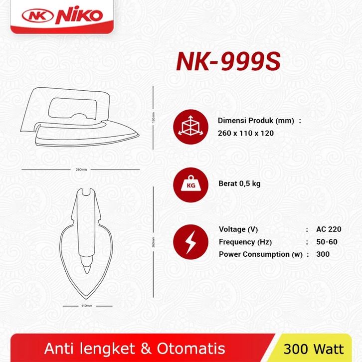 Setrika Niko NK-999S Dry Iron / Setrika Listrik Niko NK999S Gosokan Baju Setrika Murah