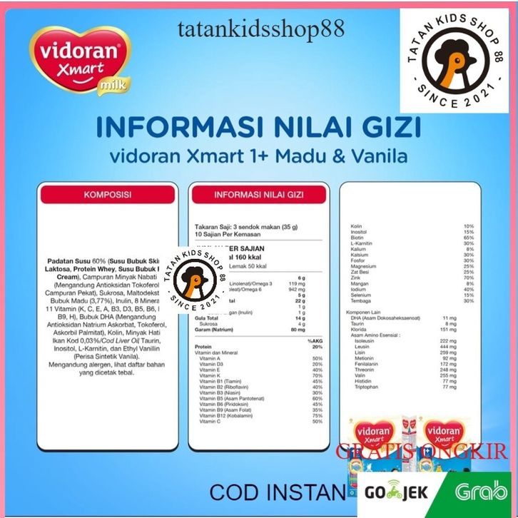Vidoran Xmart 1 3 5 Vanila Madu 700GR 925GR Susu Formula Pertumbuhan Bayi Dan Anak Sufor