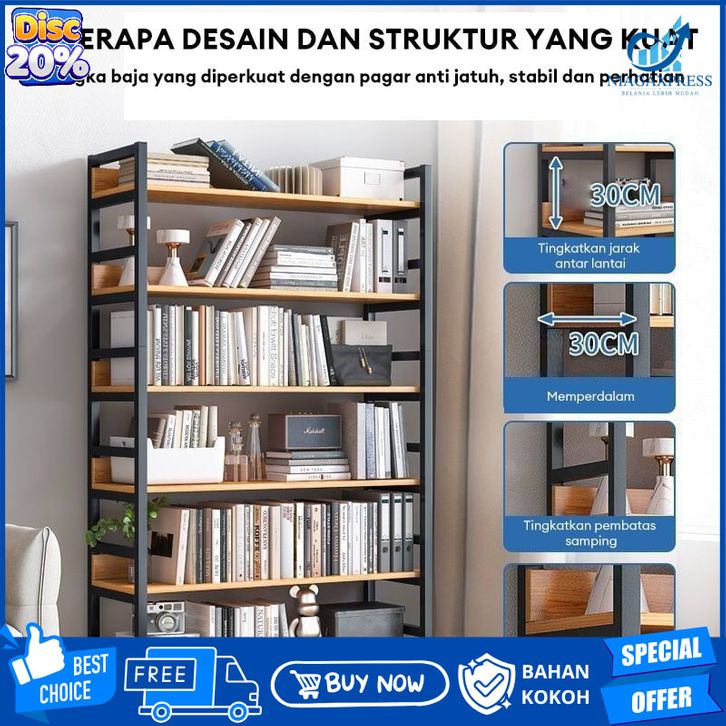 BEST Rak Buku 3/4/5 Tingkat Rak Susun Rak Besi Rak Gudang Rak Serbaguna Rak Penyimpanan 80*30*174cm