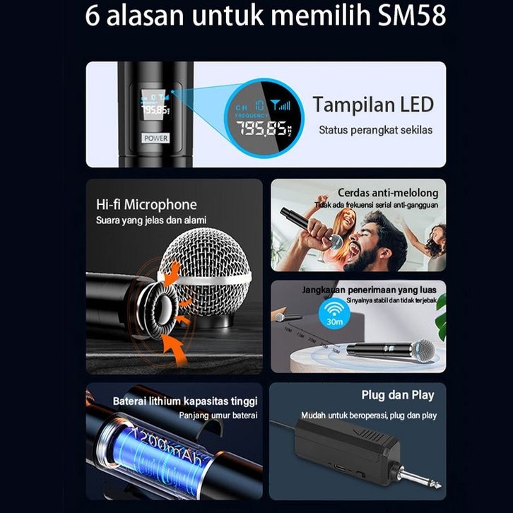 Mic Microphone Karaoke Profesional Wireless SM-58 UHF Double Free Sarung Mic