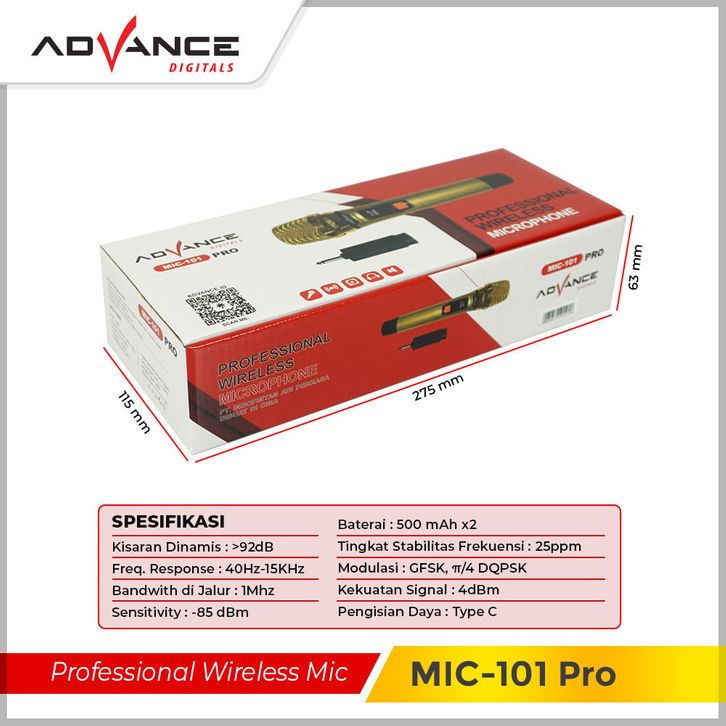 【Ready+】Advance Mic Wireless UHF Wireless Bisa Dicharger Profesional Microphone digital Batrei dapat di Charger sudah t