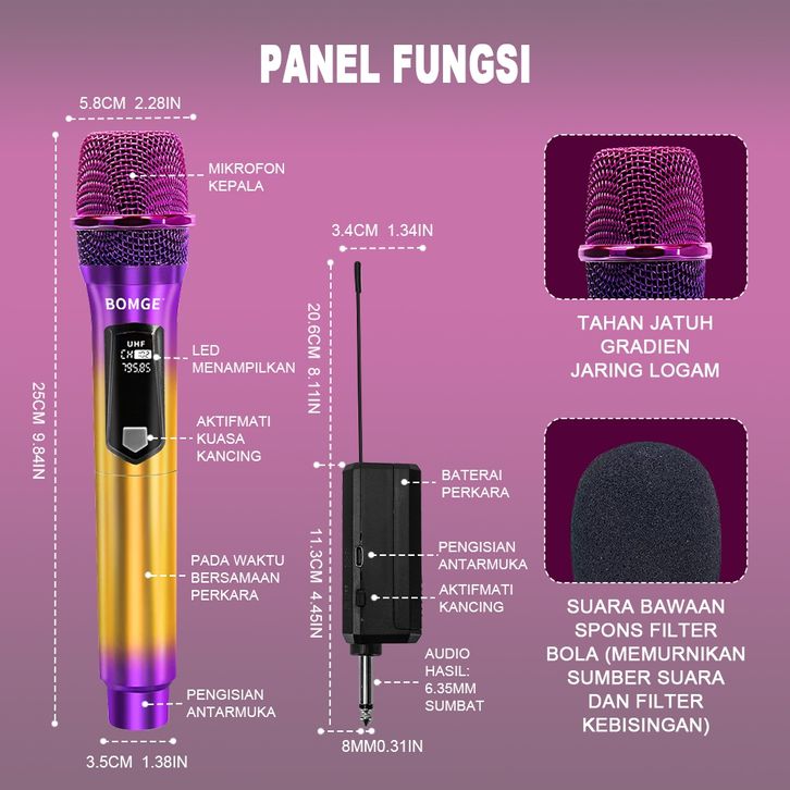 Rising Audio Mikrofon 108 Wireless Mikrofon UHF Profesional dengan Penerima, Mikrofon Warna-warni, Sempurna untuk Rapat