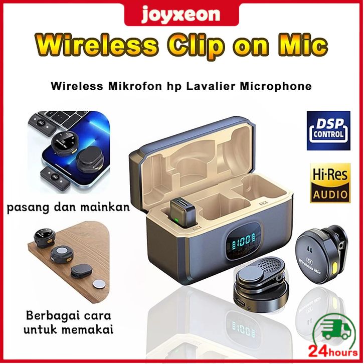 Wireless Microphone 2-In-1 Clip On Mic Magnetic Mikrofon HP Plug & Play Dual Lavalier Microphone with Charging Case / M