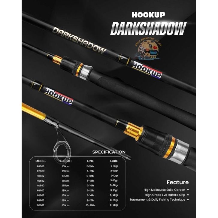 Joran HOOKUP DARKSHADOW Spinning 165cm/180cm - Hi-Carbon Solid