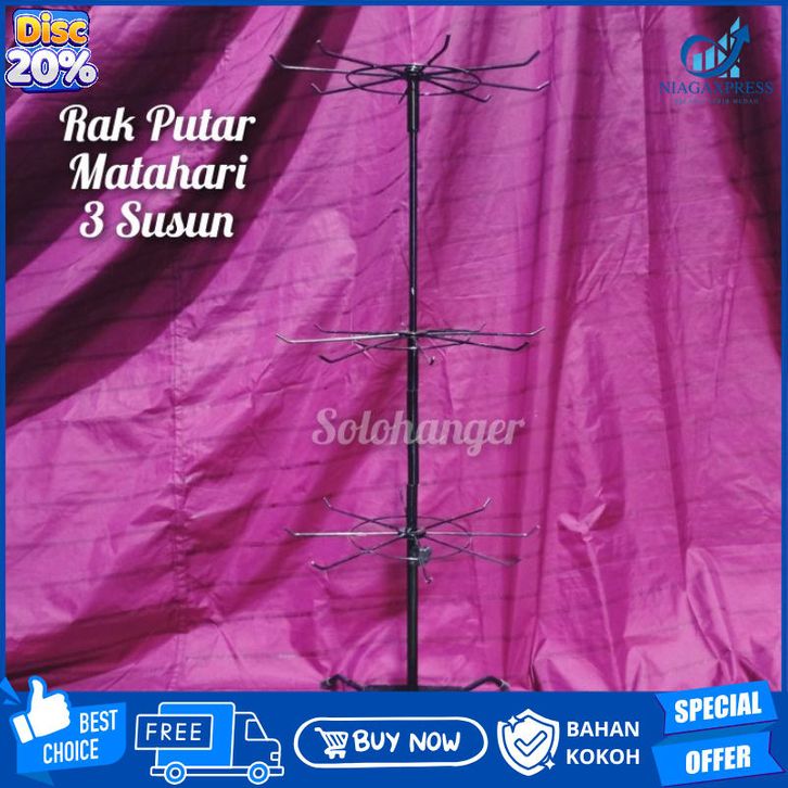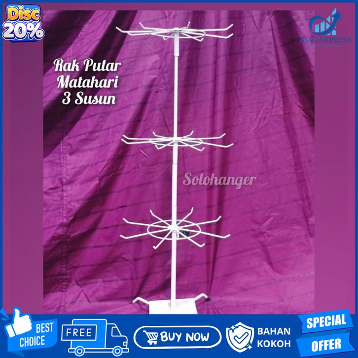 [NEW Promo] Rak Putar Matahari 3 Susun HITAM Gantungan Aksesoris Display Besi Solo Hanger Cantolan