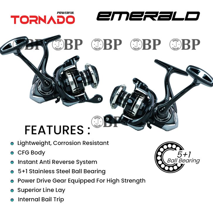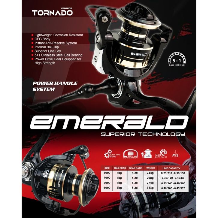 TORNADO Reel Pancing Spinning EMERALD 5+13 - 6 CFG Body Extra an dan Kuat Power Handle Reel Pancing