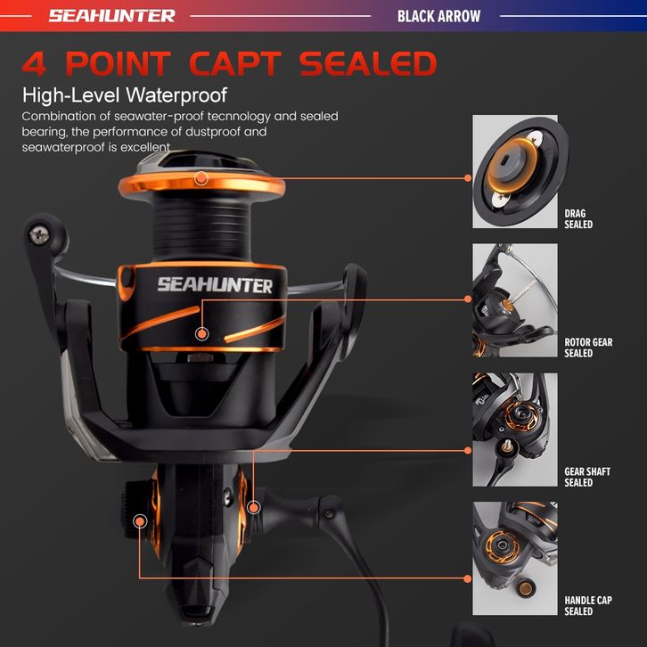 SEAHUNTER BLACK ARROW Reel Pancing Power Handle Reel Spinning 1-3 Reel Pancing Putar, Gulungan Tahan