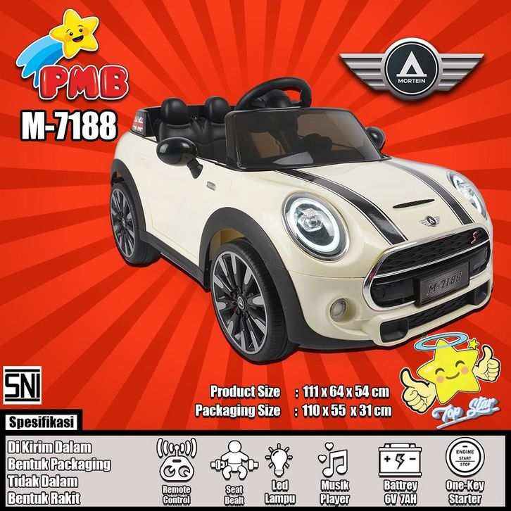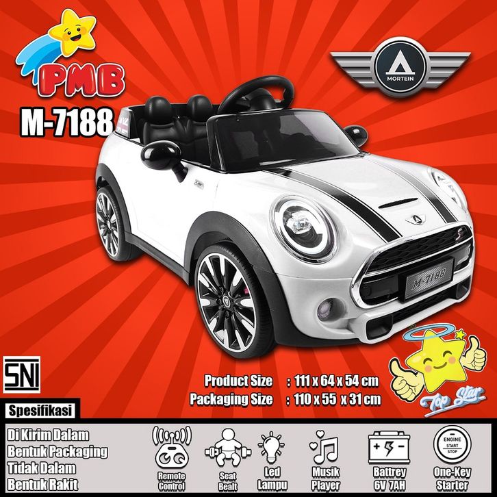 MAINAN ANAK MOBIL AKI Mini Cooper M-7188 PMB//MOBIL AKI ANAK BISA REMOT BLUETOOTH/KADO ANAK