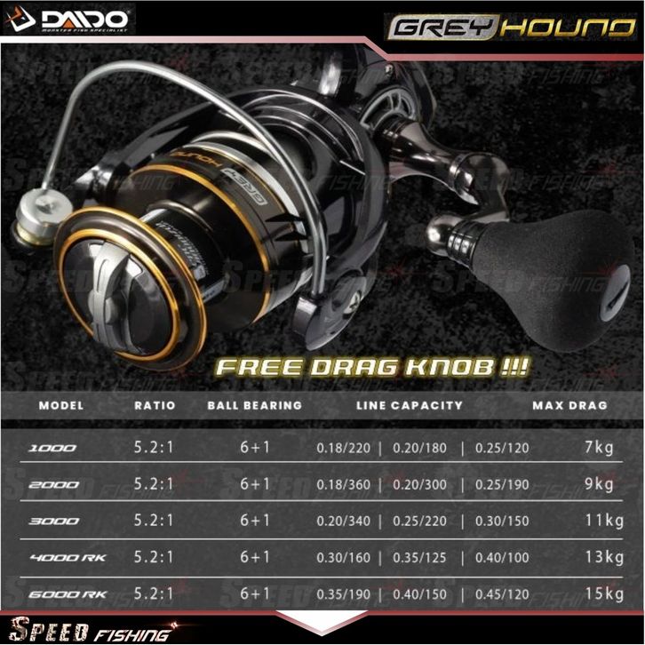 Reel Pancing Daido Greyhound Hell Hound 1 2 3 4 6 RK Spinning Power Handle Extra Knob Drag grey