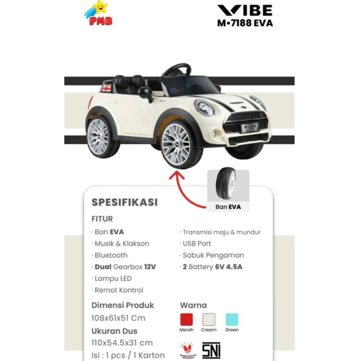 Mobil Aki Anak PMB Mini Cooper 7188 DUAL dan VIBE M7188B EVA