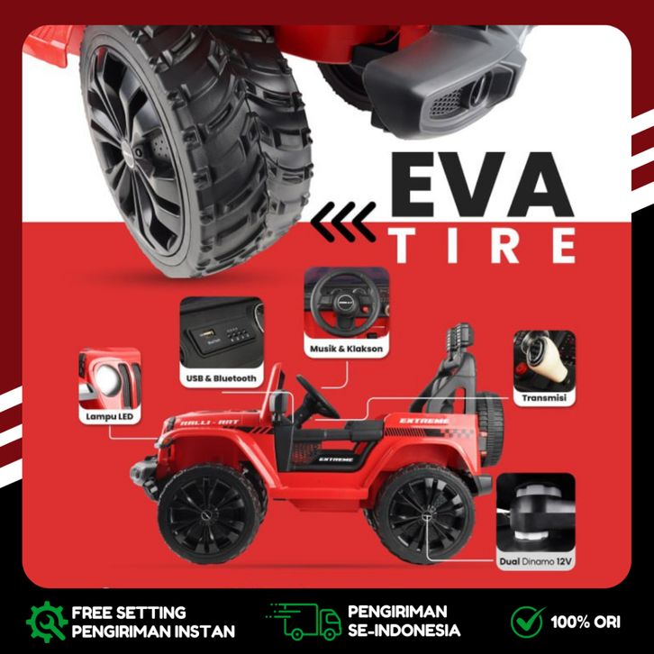 Mobil Aki Mainan Anak Remot PMB 8288 EVA KARET Jeep 12V Ban Eva 2WD Murah BDG
