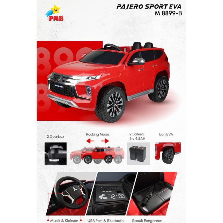 Mobil Aki Anak PMB Mitsubishi Pajero Sport M-8899 dan M-8899B Eva