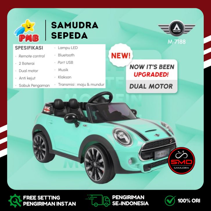 Mobil Aki Anak Cas Remote PMB 7188 2 Dinamo 12V Mini Cooper Murah BDG