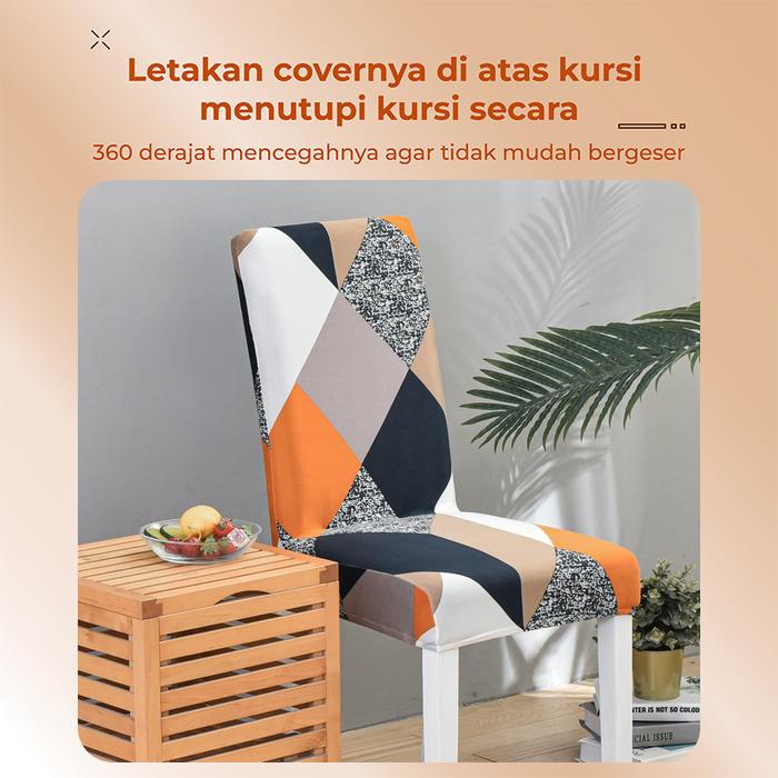 ORIGINAL Cover Kursi Bangku Elastis Pattern Menarik Sarung Kursi Penutup Bangku Chair Cover - KHAKI 1PCS