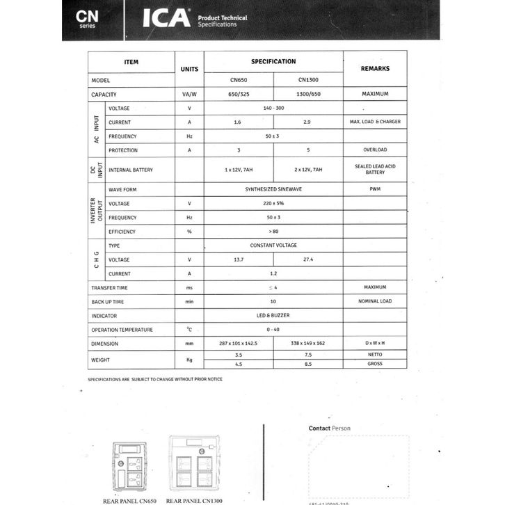 UPS ICA CN650 650VA 325 Watt with AVR Stabilizer ICA UPS CN 650