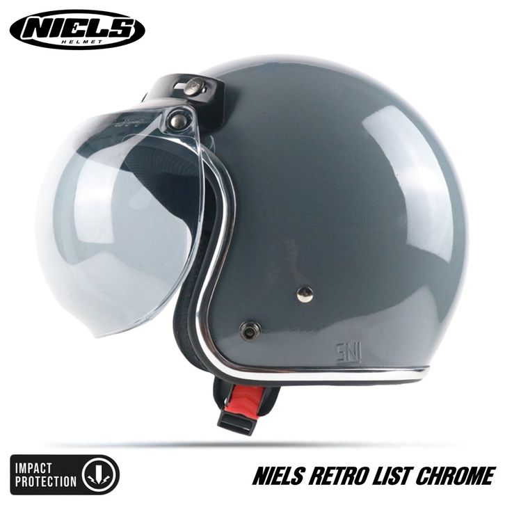 NIELS - Helm Bogo Retro List Chrome Dewasa Kaca Cembung / Kaca Datar SNI Motorcycle
