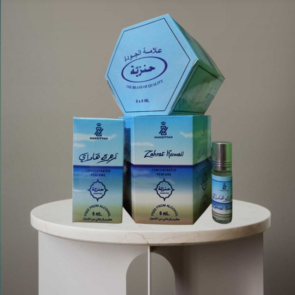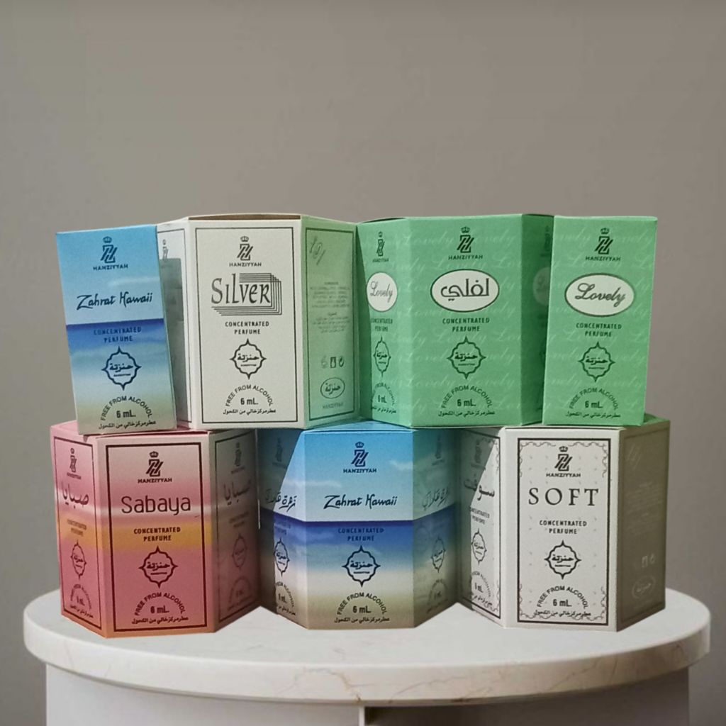 Parfum Non Alkohol Roll On 6ml HANZIYYAH | 1 Box isi 6 Botol | Wangi Tahan Lama Halal Bisa Untuk Sholat & berbagai aktifitas sehari hari | cocok di pakai oleh pria dan wanita | wangi tahan lama