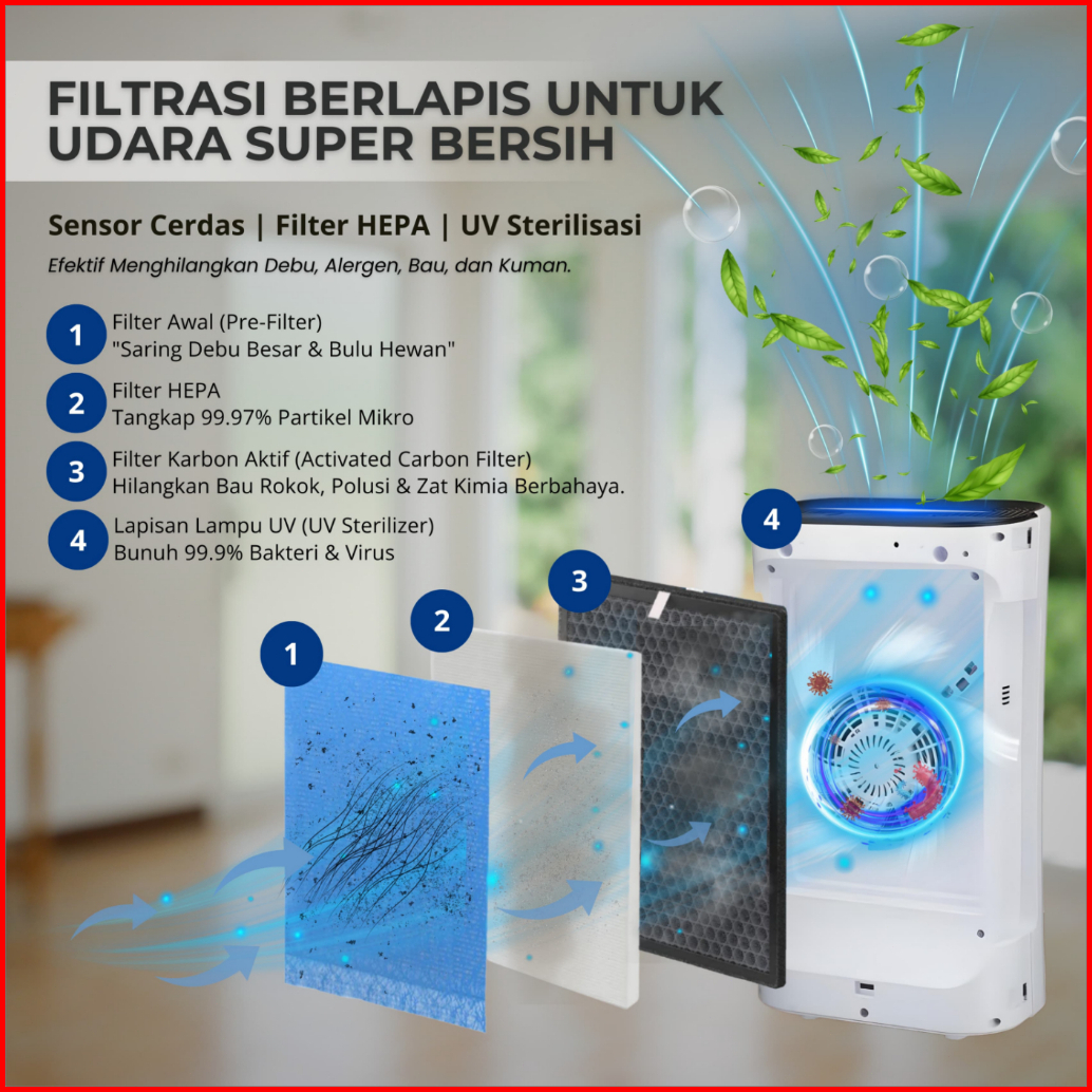 Miss Life Air Purifier Hepa Filter Penyaring Udara Ruangan Cadr Tinggi Uv Anion Pembersih Udara Aman Bayi Pet Anti Debu