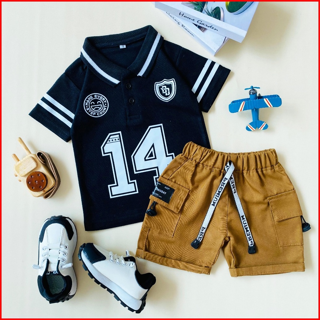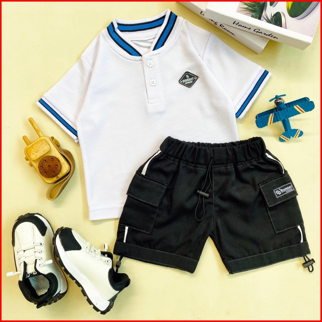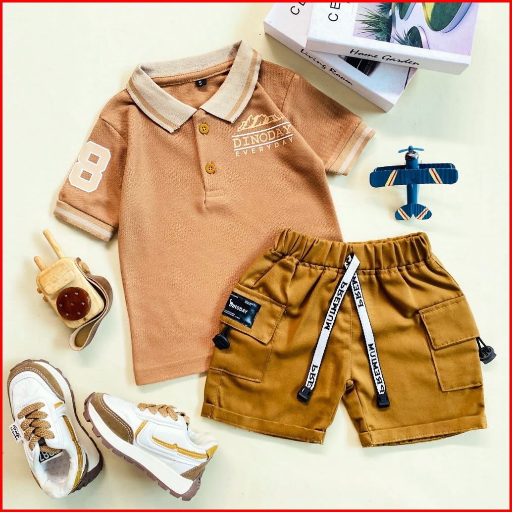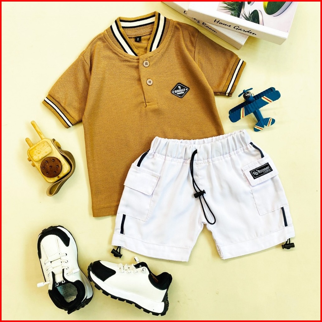 Estishop X Dinoday Setelan Anak Laki Baju Wangki Kaos Polo Kerah Celana Cargo Korean 1 - 9 Tahun