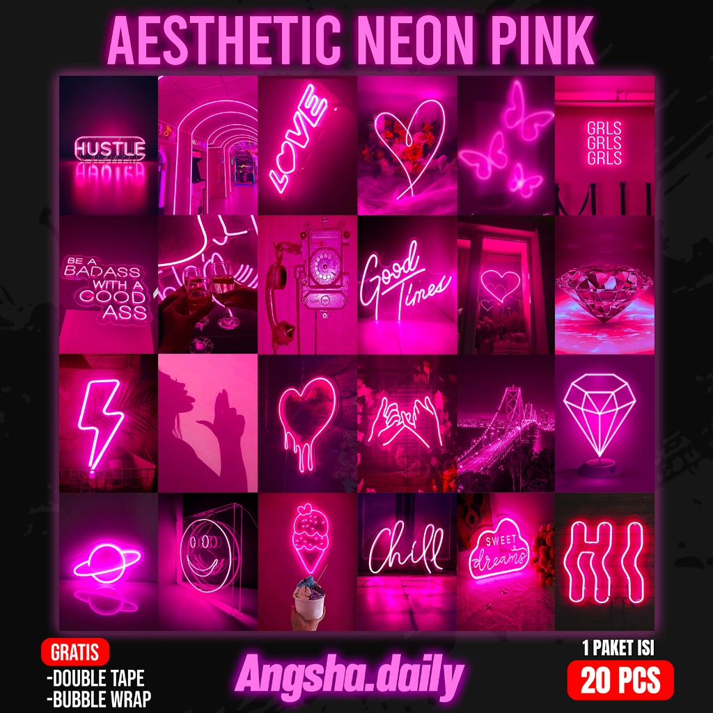 Poster Aesthetic Neon Blue Pink Dekorasi kamar hiasan dinding ukuran a5