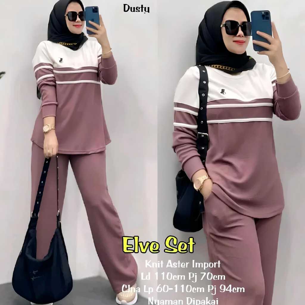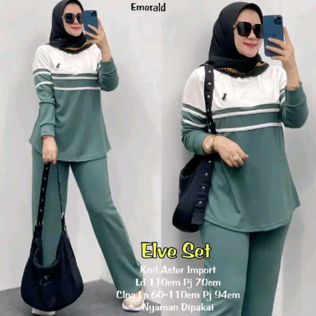 NEW SET ELVE WANITA TERBARU 2025 MATT KATUN LD 115 CM / BAJU SETELAN APOLLO PINGGAG CELANA KARET TRENDY TERLARIS