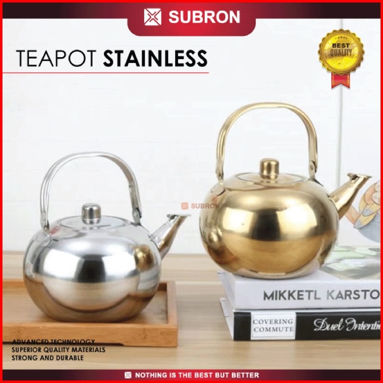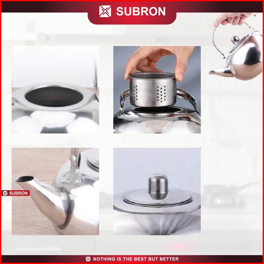 Subron Teko Stainless Bulat 1.2l 1.6l 2.2 Liter Tea Pot Air Panas Teh Kapasitas Besar Banyak