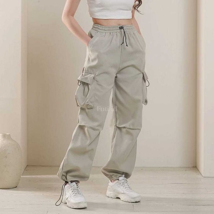 Kiya Cargo Pants Wanita Higwaist Loose Korean Style Jumbo Celana Cargo Wanita Terbaru