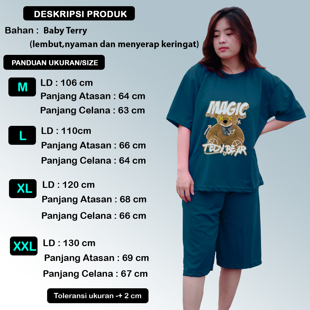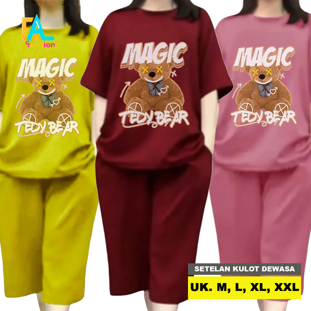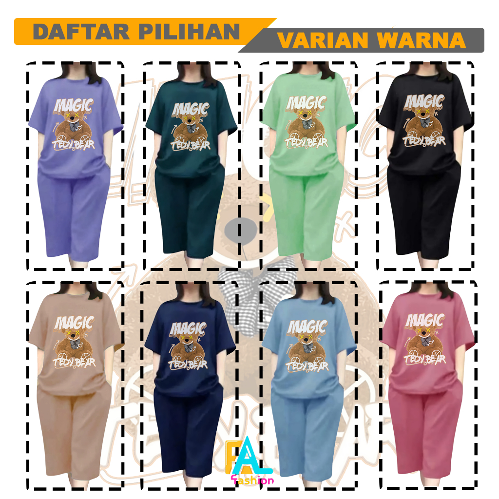 AL Fashion - GROSIR Setelan celana kulot 3/4 Baju dewasa wanita sablon DTF Ukuran M L XL JUMBO