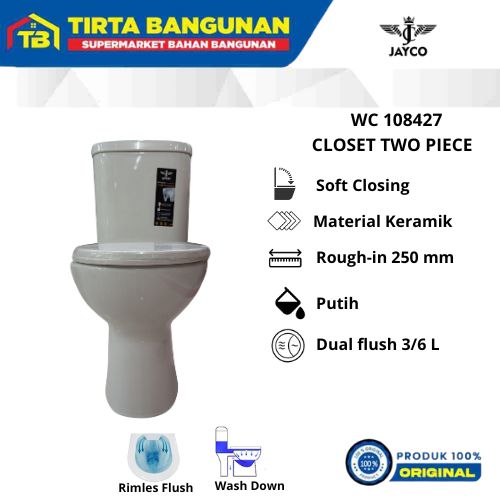 JAYCO WC 108427 KLOSET/ TOILET/ WC/ CLOSET DUDUK TWO PIECE DUAL FLUSH 3/6 LITER AS 250 MM