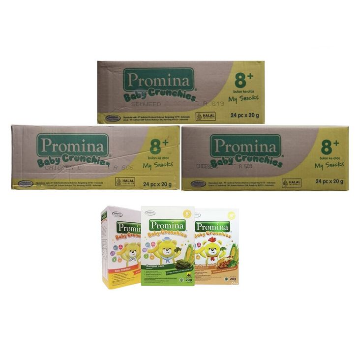 Promina Crunchies 1 Karton Isi 24 Box 20gr Cheddar Rumput laut Cemilan Makanan MPASI Bayi Istana
