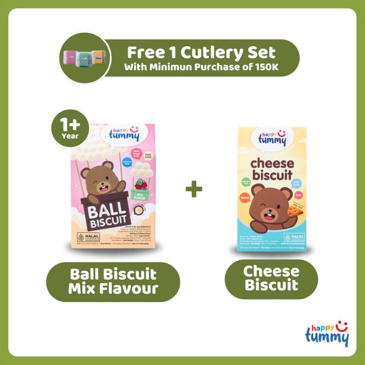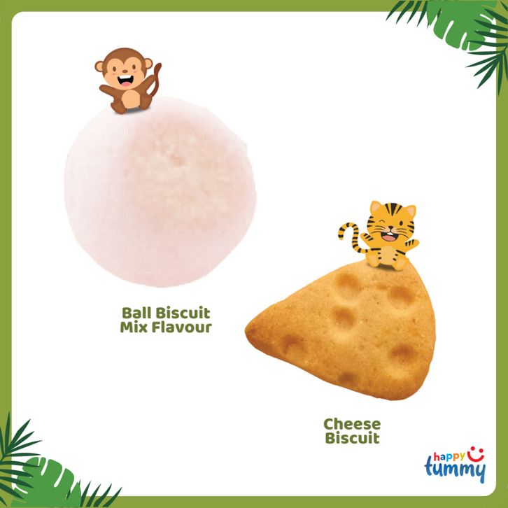 PAKET KOMBO CAMILAN MPASI - HAPPY TUMMY Ball Biscuit Mix Flavour X Cheese Biscuit 60gr / Snack Anak