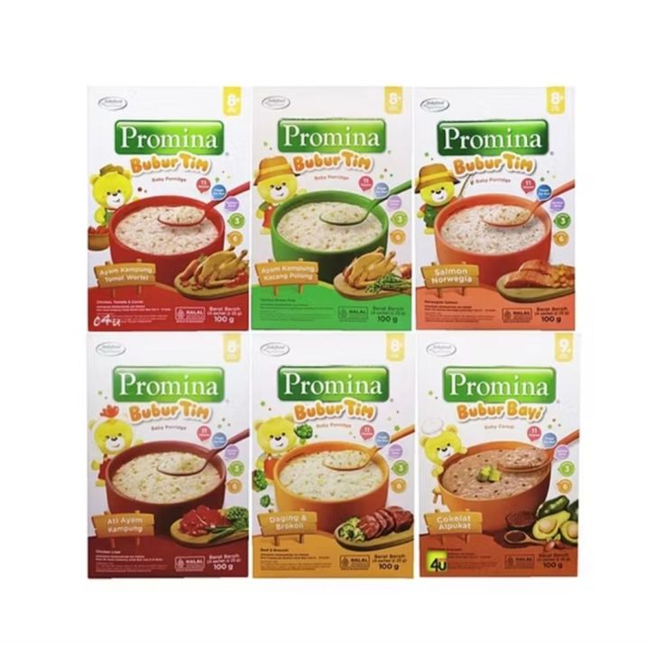 Bubur Promina Fortifikasi 8+ dan 6+ ayam kampung daging brokoli avocado ati chicken salmon MPASI