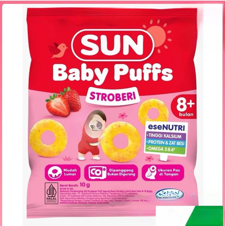 Sun Baby Puff Sachet Kemasan 10gr Biskuit Sereal Makanan Bayi Fruit Puree Puffs Cemilan Untuk Usia 8