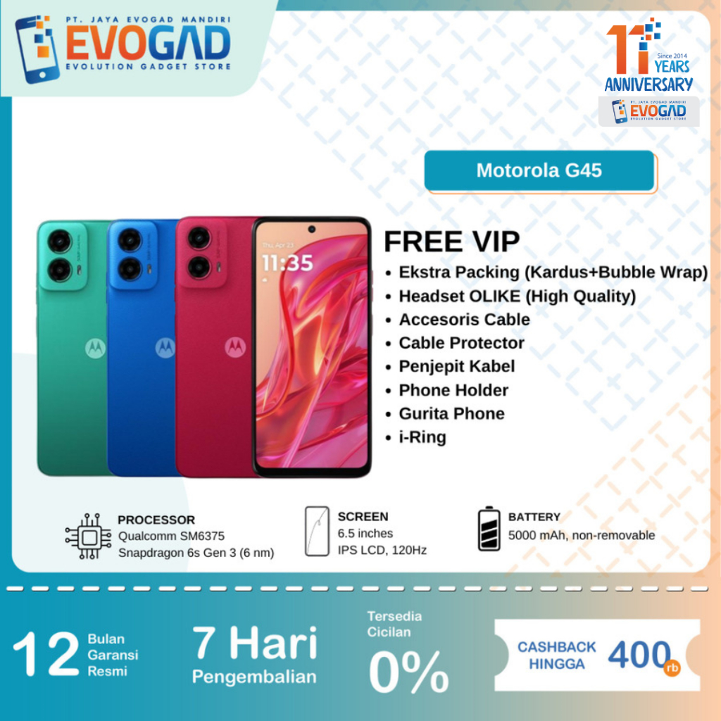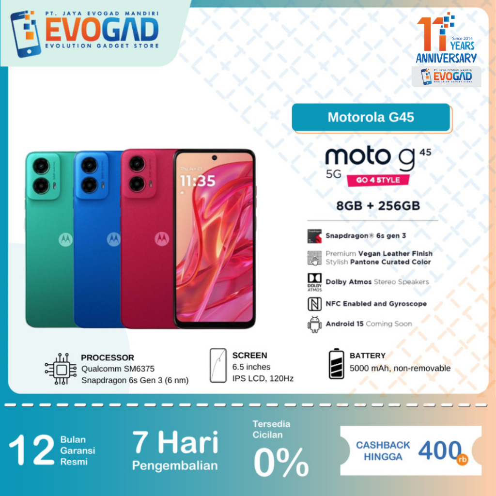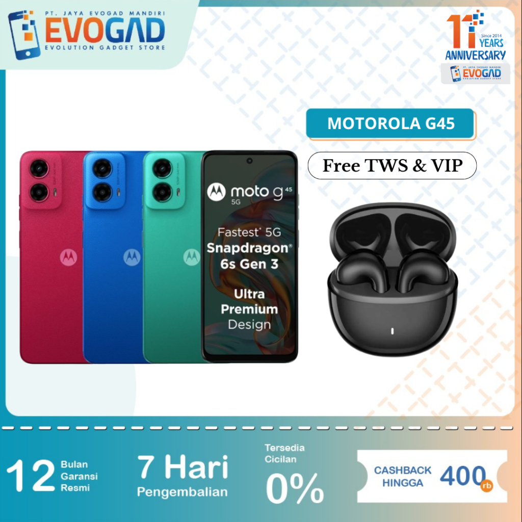 Motorola G45 5G 8/256GB Up to 16GB Extended Ram, Snapdragon 6s Gen 3 6.5 inch Gorilla Glass 3 NFC 5000 mAh | Garansi Resmi Motorola Indonesia 1 Tahun