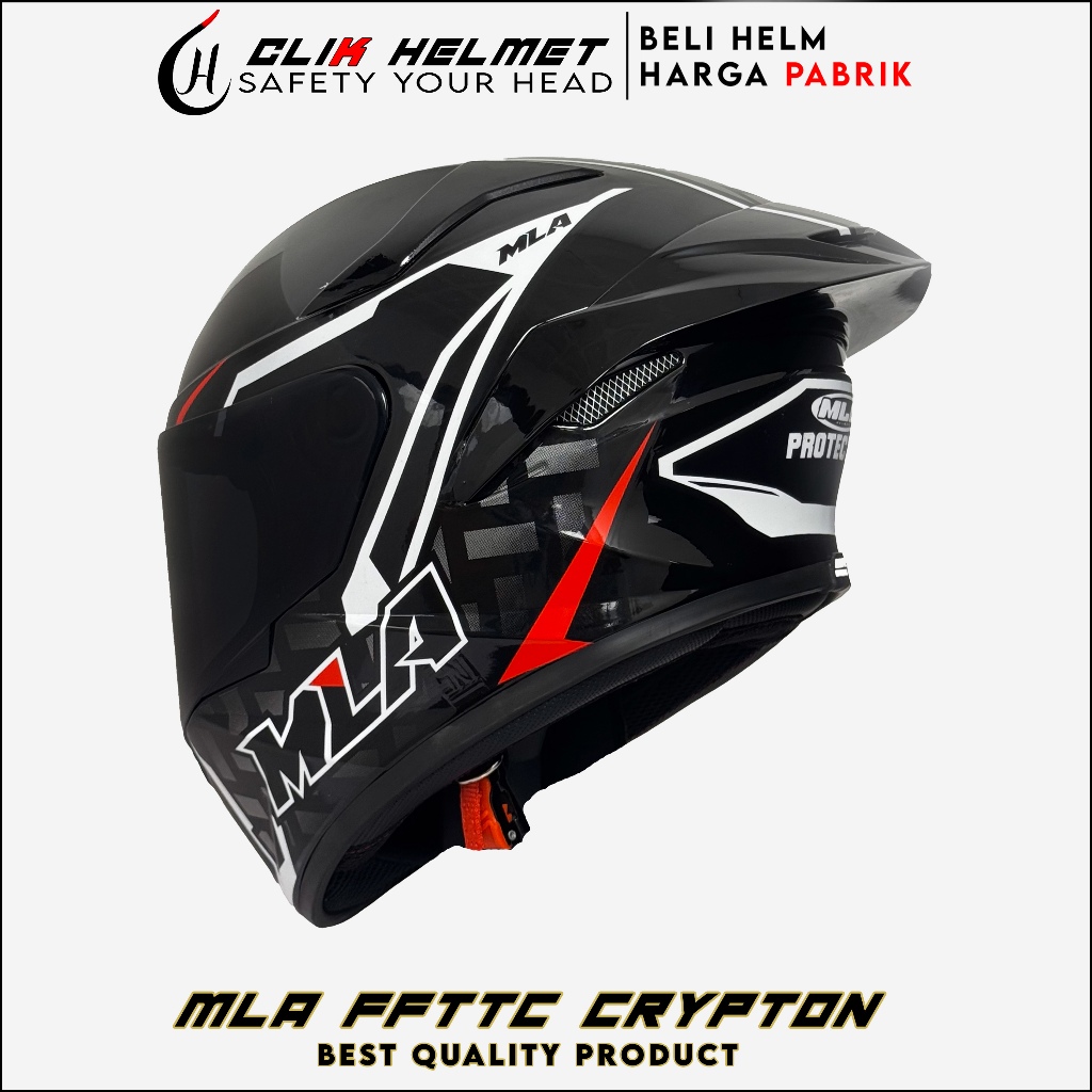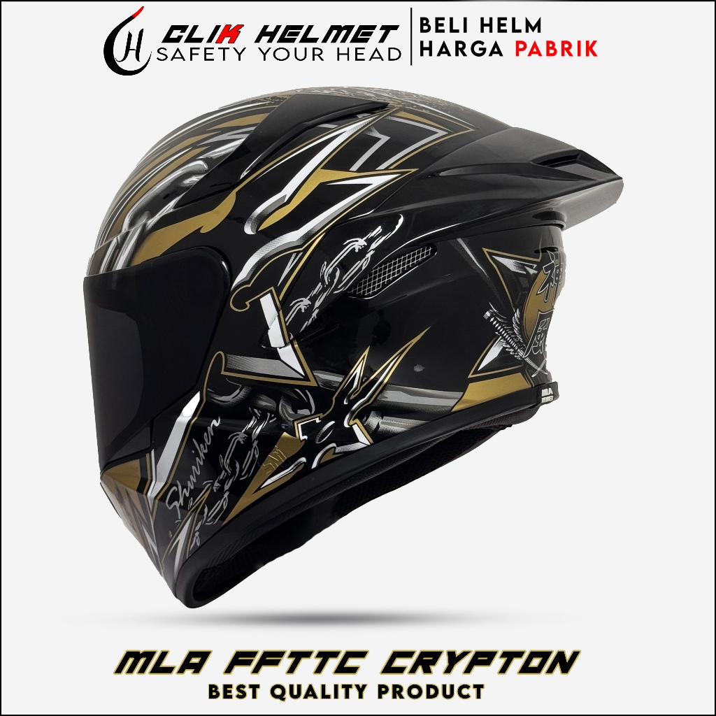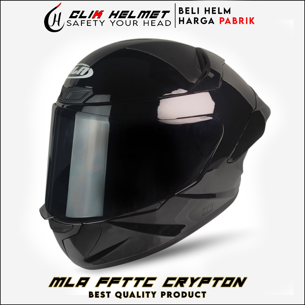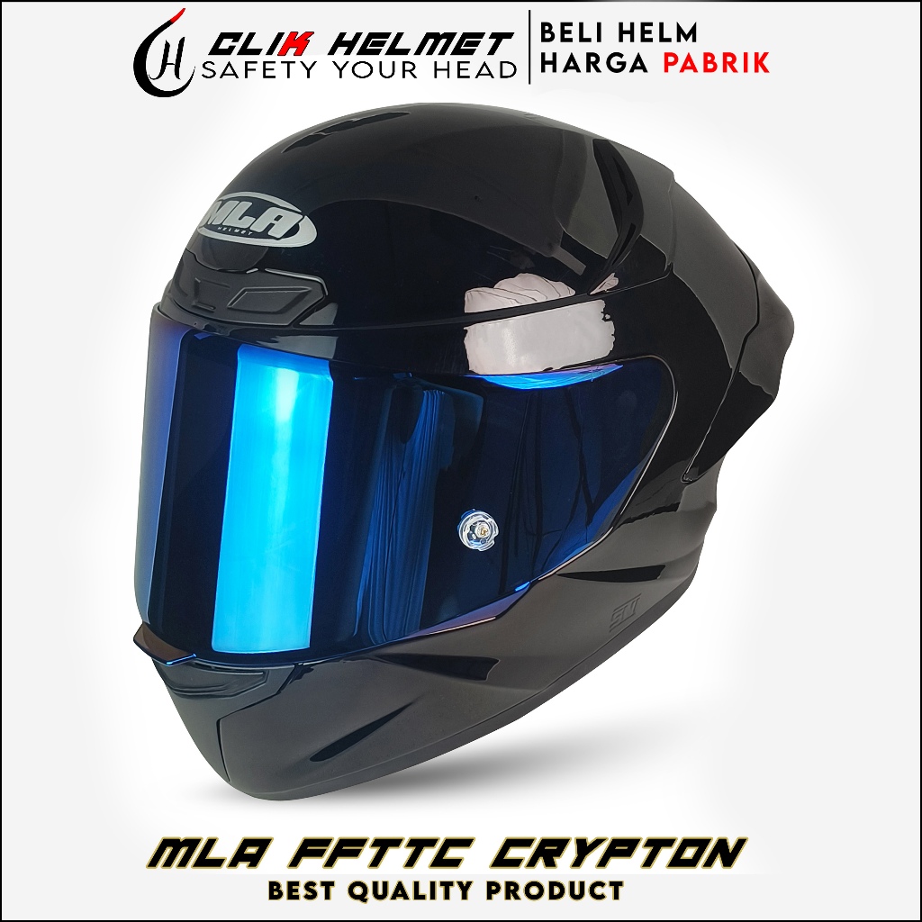 Helm Full Face | MLA CRYPTON HITAM DOF KACA BLUE | Helm Pria Dan Wanita Dewasa Paket Ganteng SNI