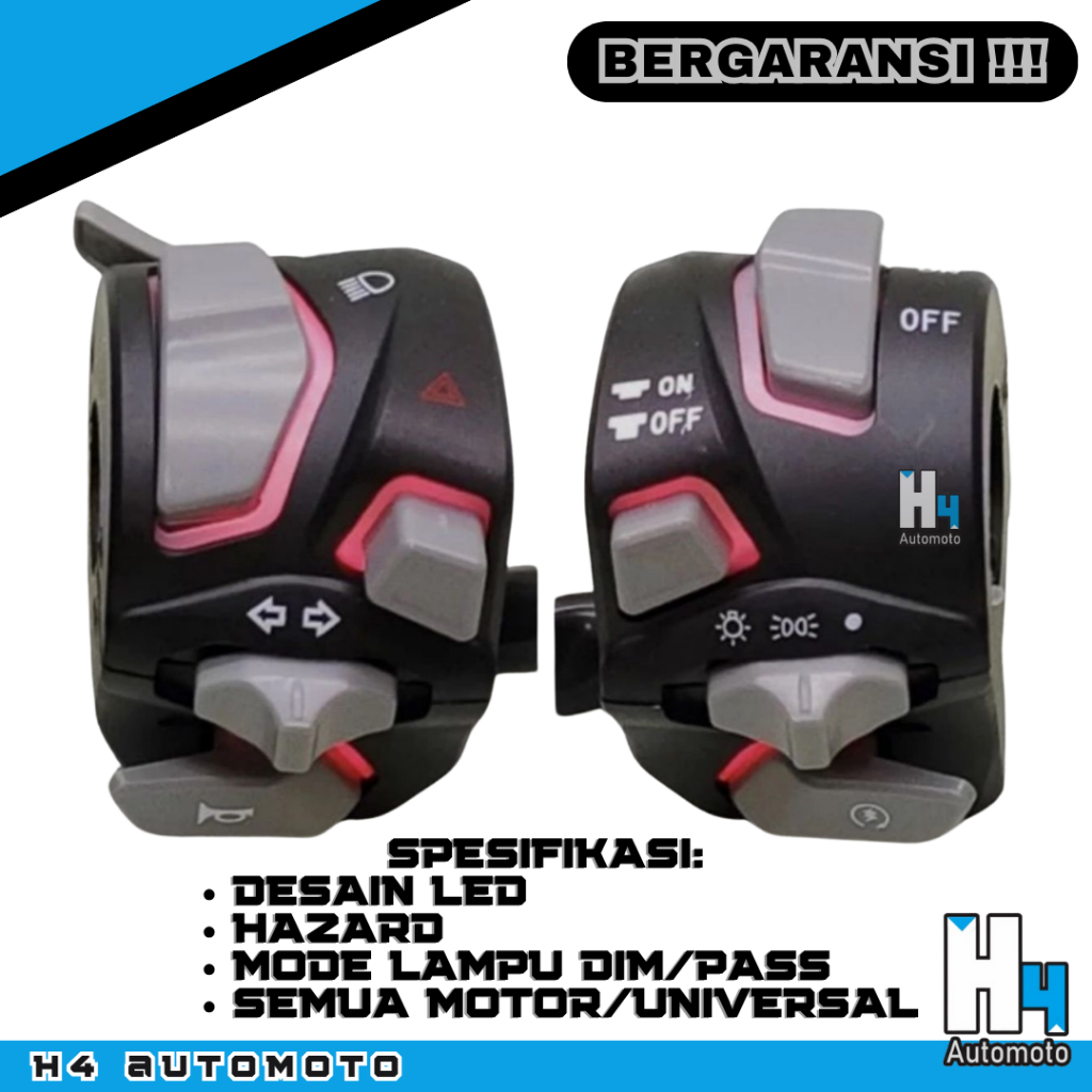 Saklar Holder SET Nyala LED Vietnam H4 Body Black Soket NMAX OLD dan Universal Nyala LED tersedia warna Biru Merah Putih Pelangi Holder Switch Set With Lighting LED Motorcycle Universal