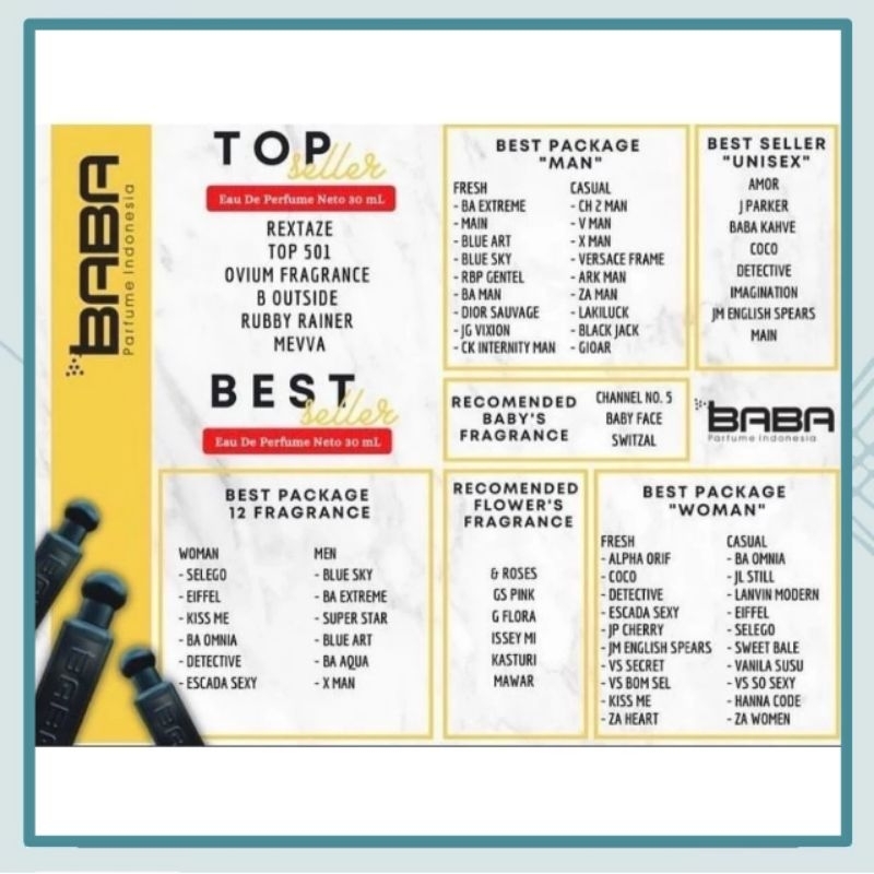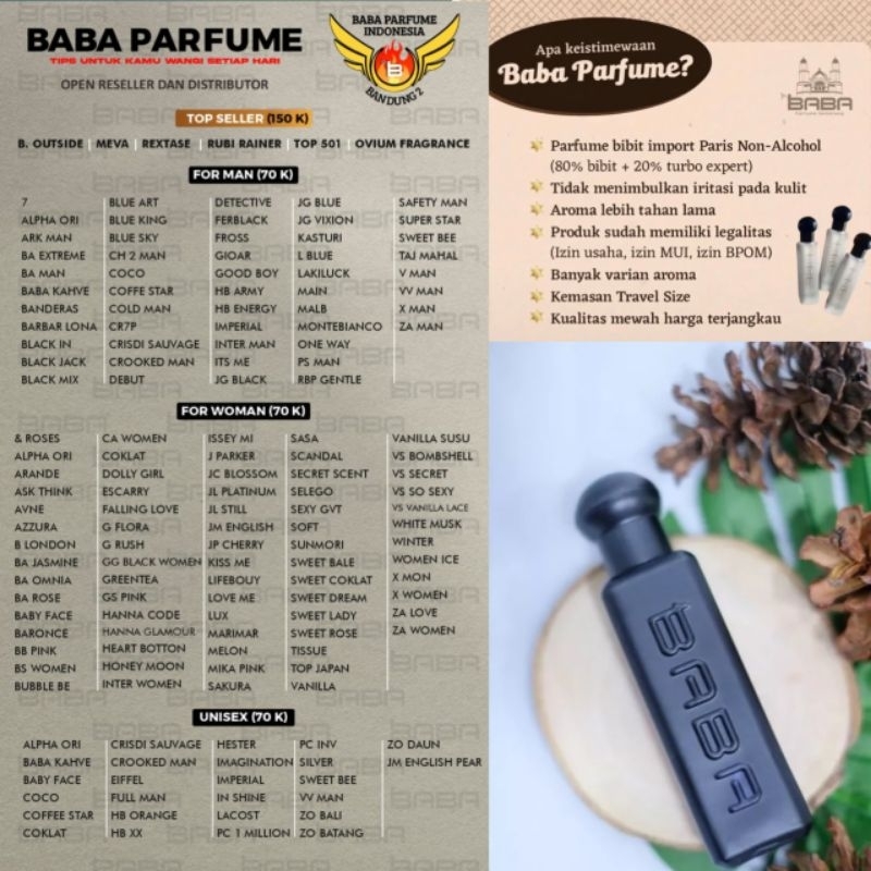 Baba Parfume Indonesia Custome Aroma Tahan Lama Series