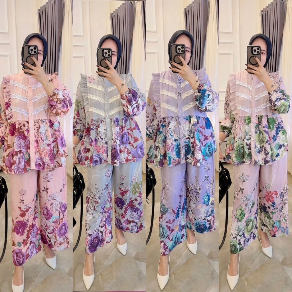 LAVESHA One Set Setelan Celana Atasan Blouse Wanita Coquette Aesthetic Casual Korean Style Pastel