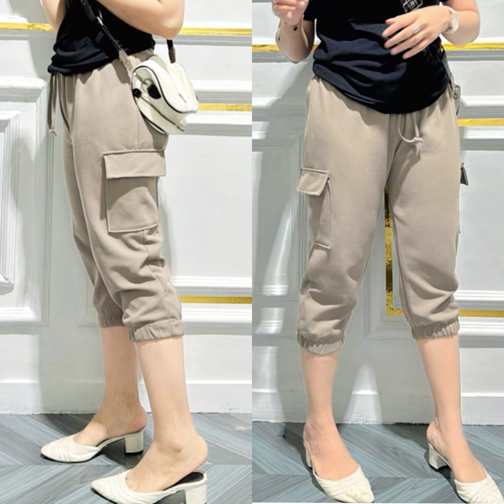 (Polos) CELANA 3/4 CARGO KNIT JUMBO WANITA / CELANA Polos CEWEK BIG SIZE / CELANA KAIN / Celana Knit / CELANA SANTAI / CELANA HARIAN / Celana Murah / Celana Santai