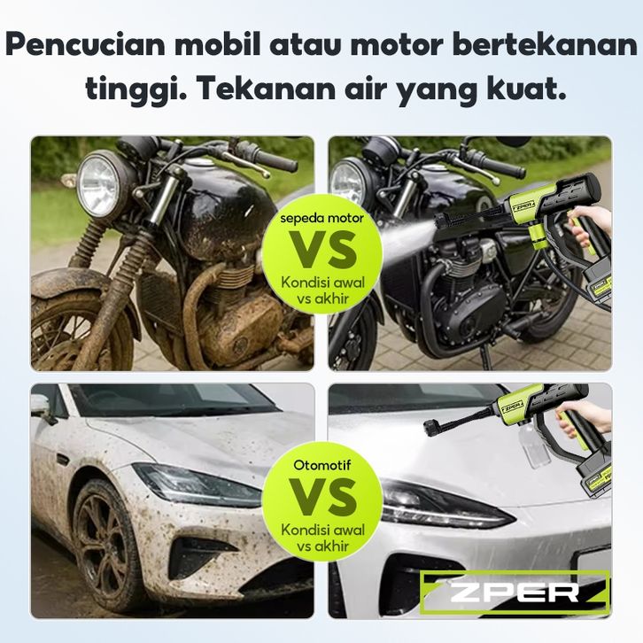 ZPER Alat Cuci Mobil Air Tekanan Tinggi Alat Portable Nirkabel Untuk Nyuci Mesin Cuci Lithium ZP