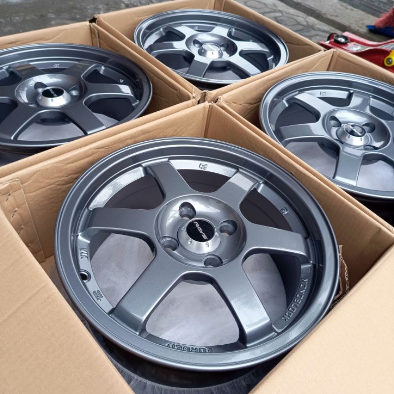 4 Velg R15 PCD 100 Volks rays TE 37 Abu metal gun Lebar 6,5 ET 40 Brio mobilio jazz calya sigra agya ayla datsun vios civic city spin etios lova