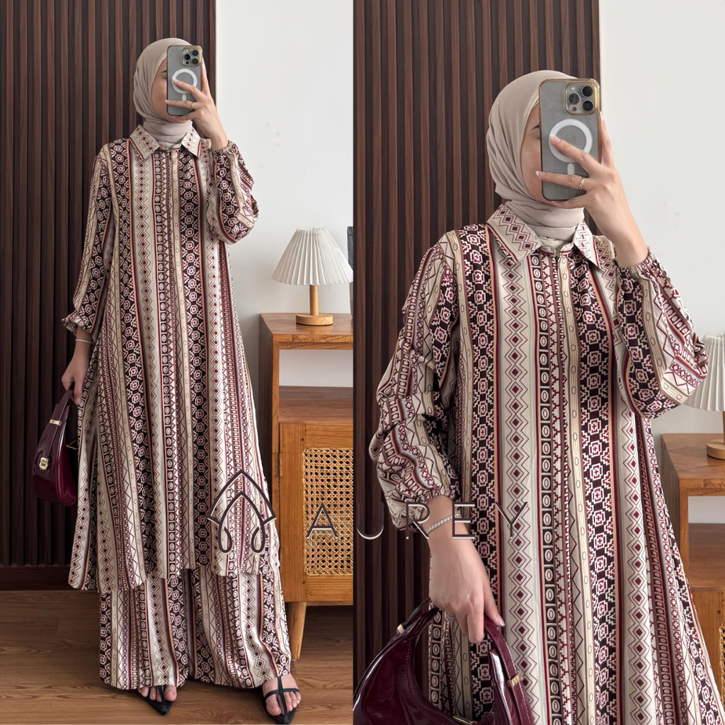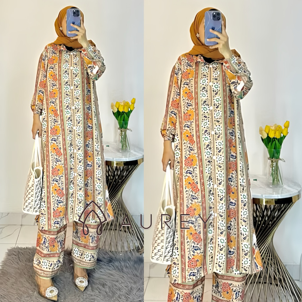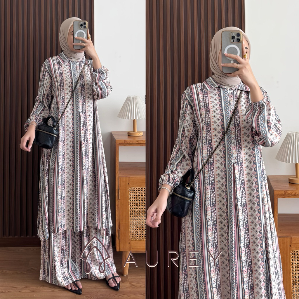 AUREY Oneset Tunik Tiora Setelan Tunik Panjang Motif Kekinian Terlaris Set Tunik Rayon