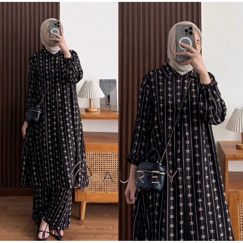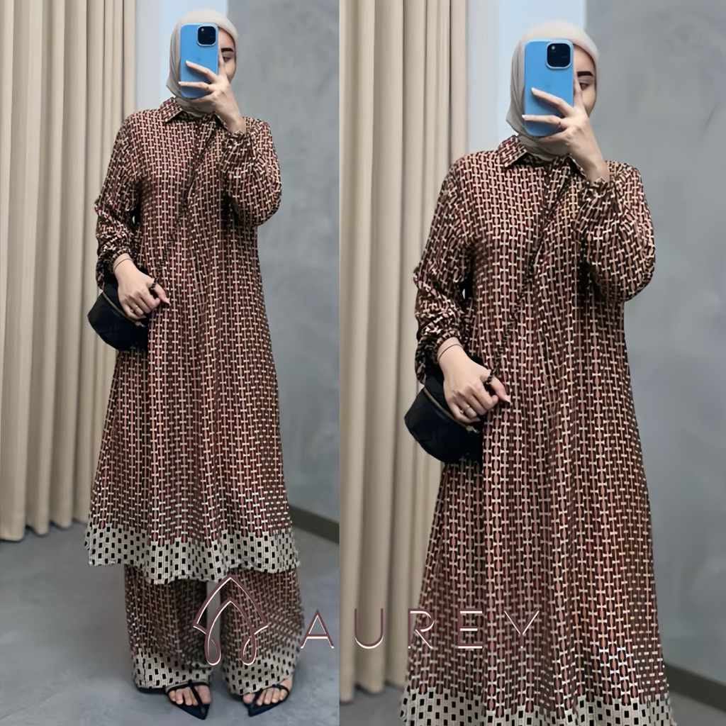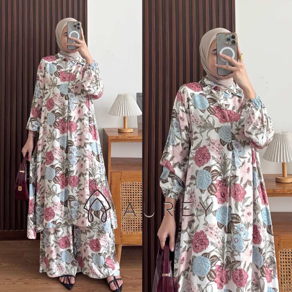 AUREY Oneset Tunik Tiora Setelan Tunik Panjang Motif Kekinian Terlaris Set Tunik Rayon